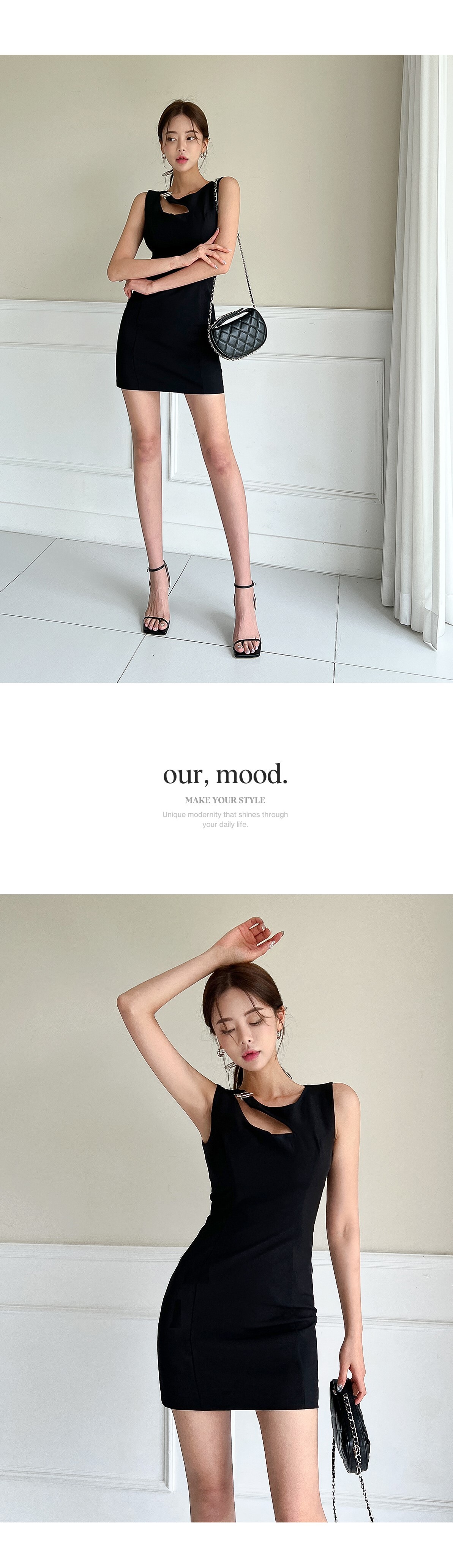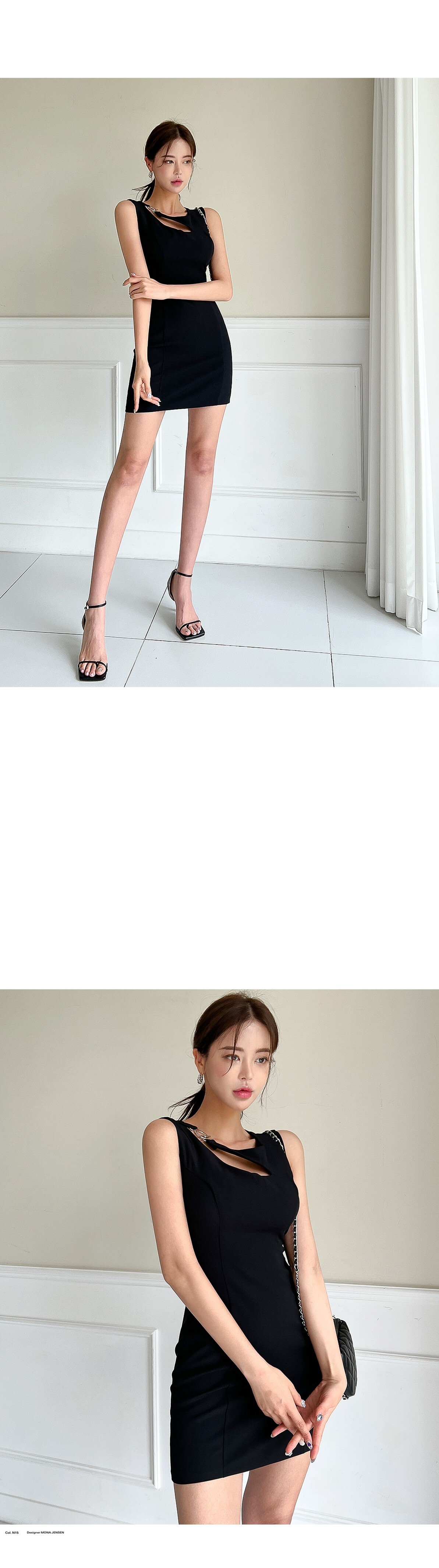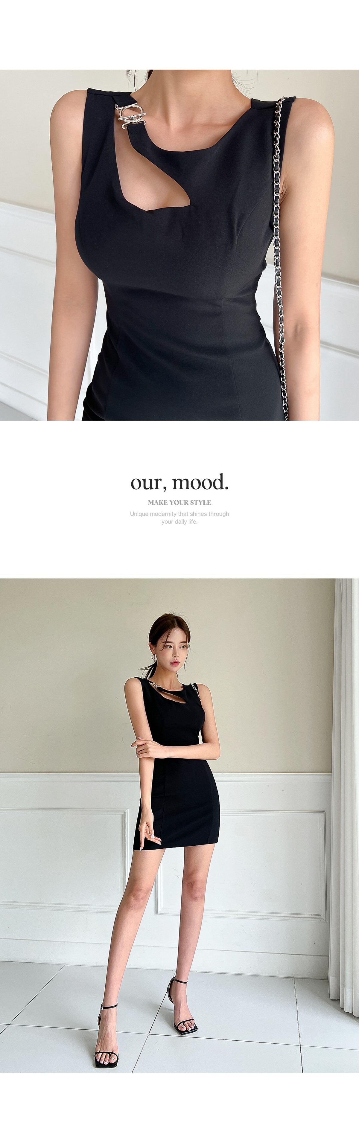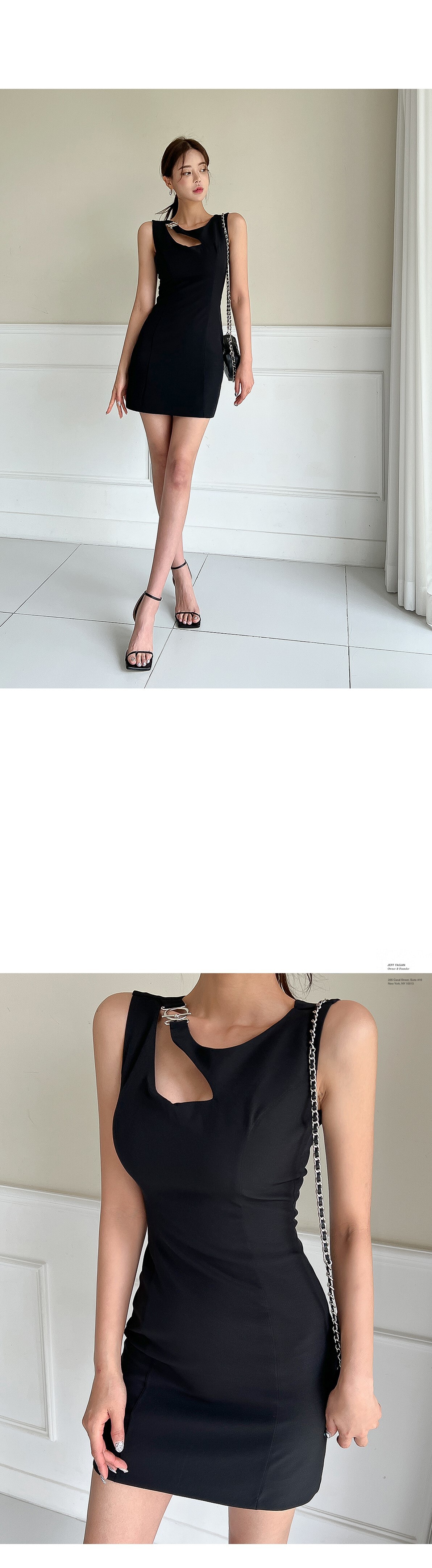 不規則鏤空圓環釦飾短裙洋裝FH12548