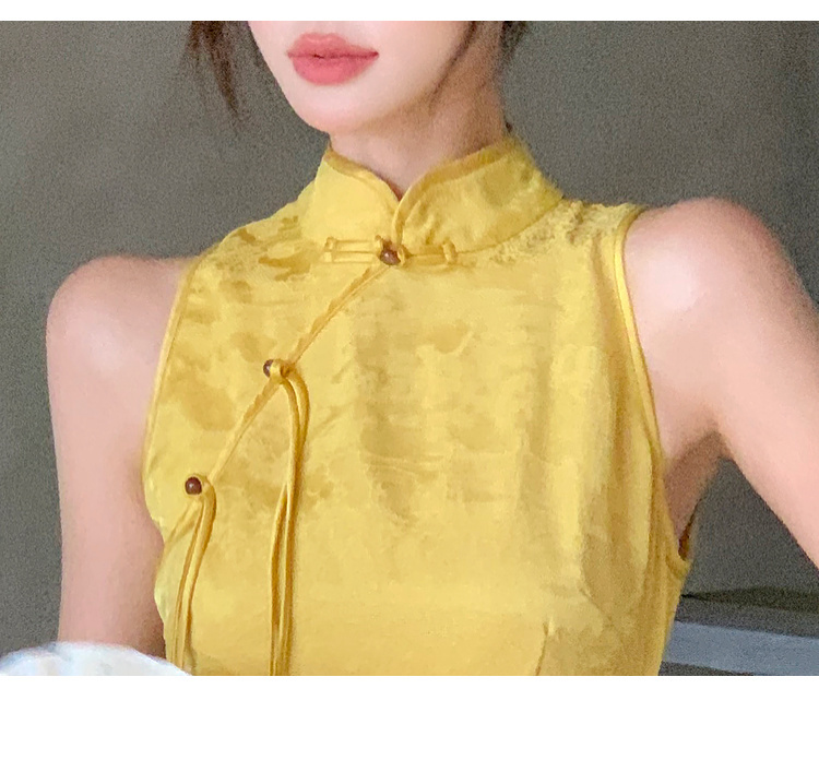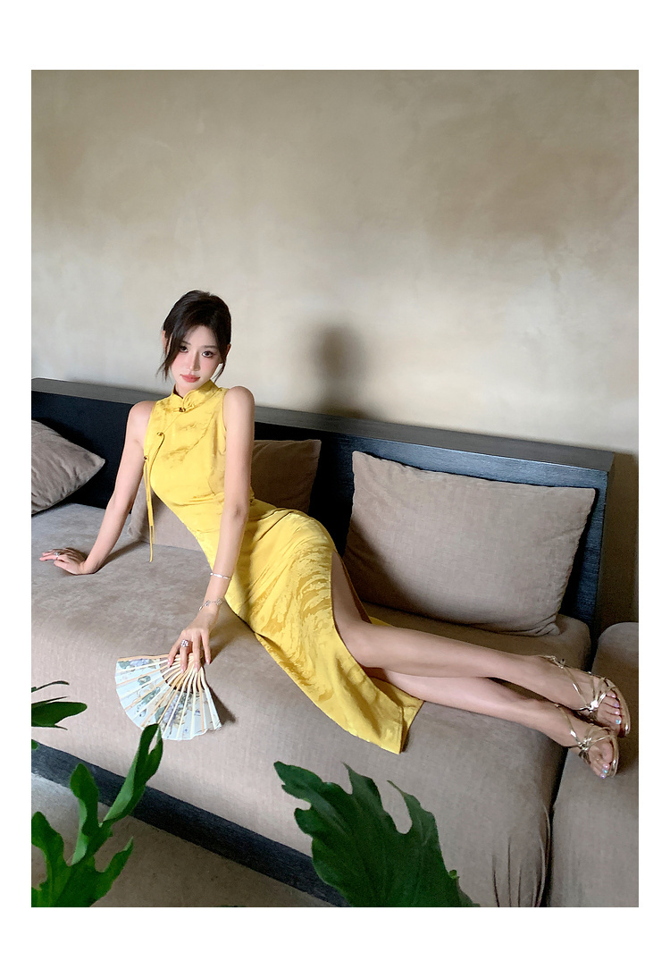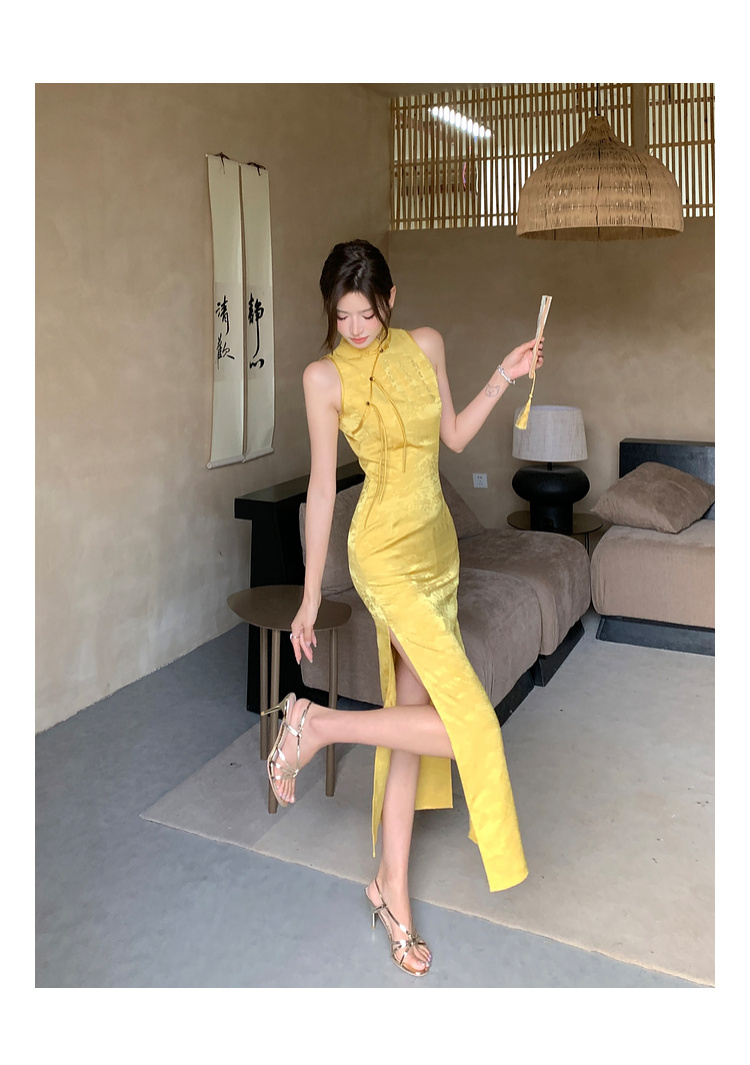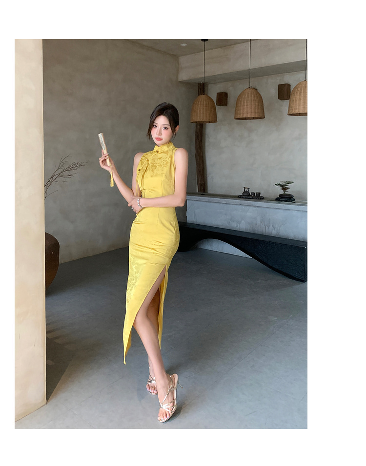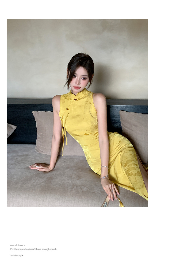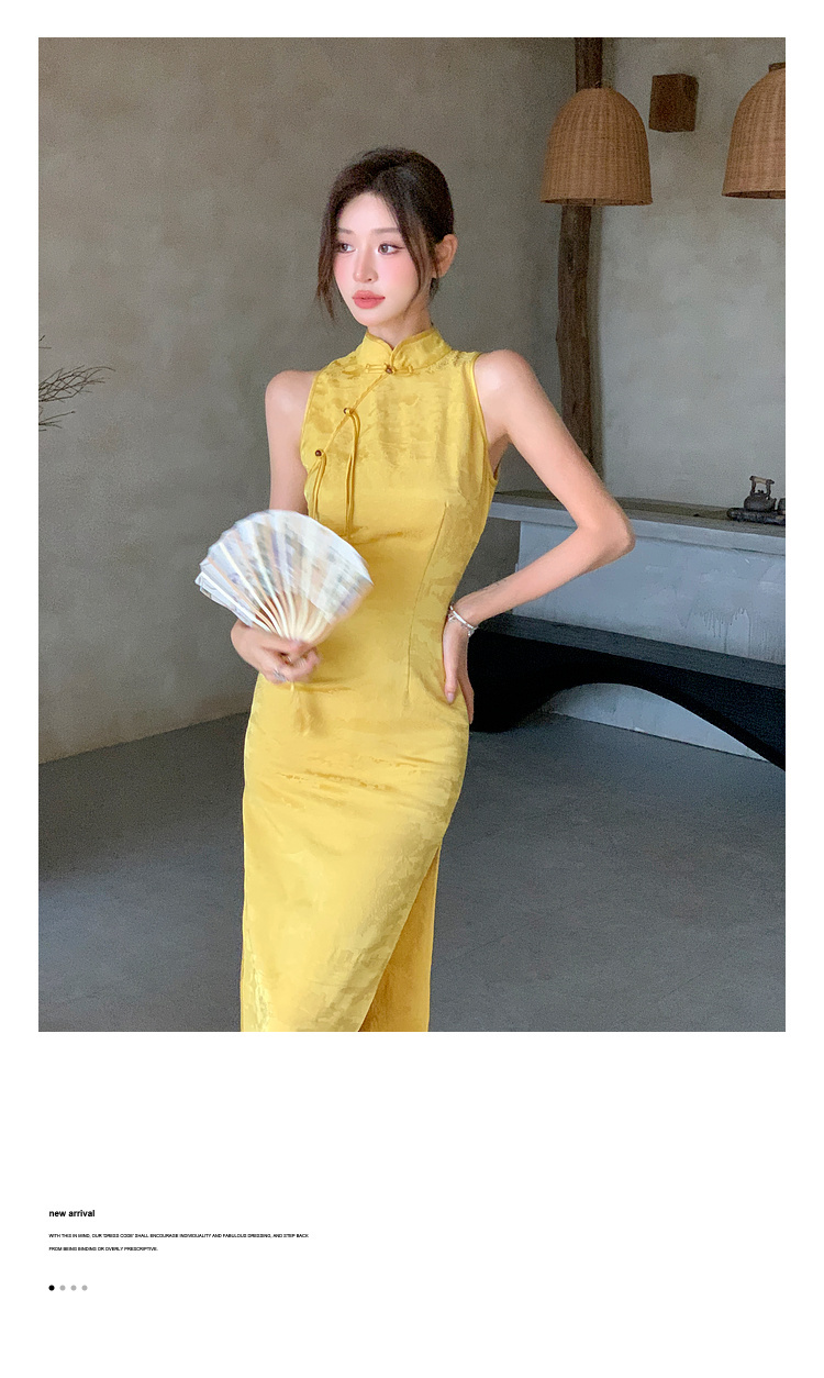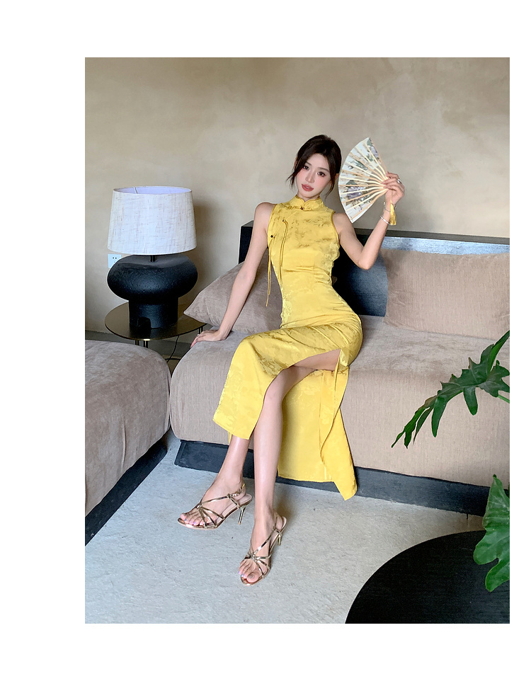 現貨-中國風緹花暗紋旗袍式長洋裝FZ12455