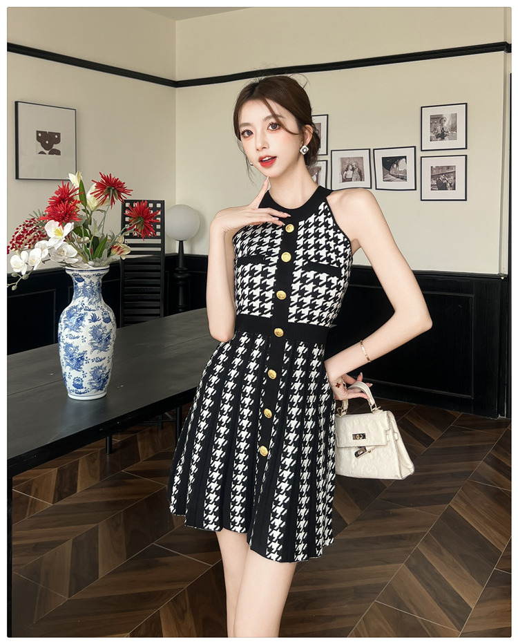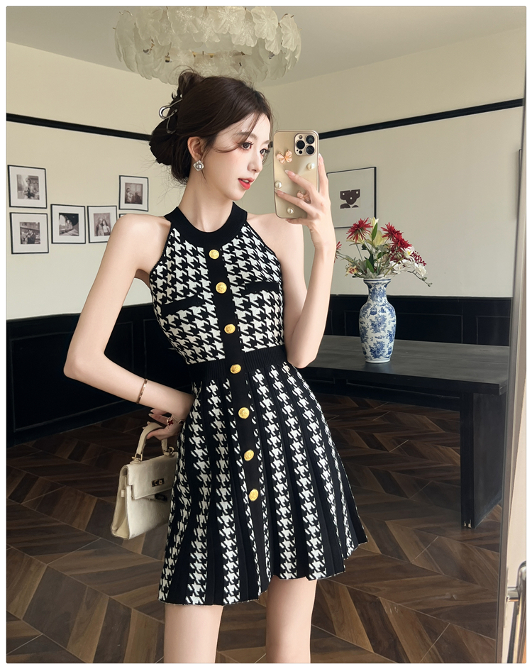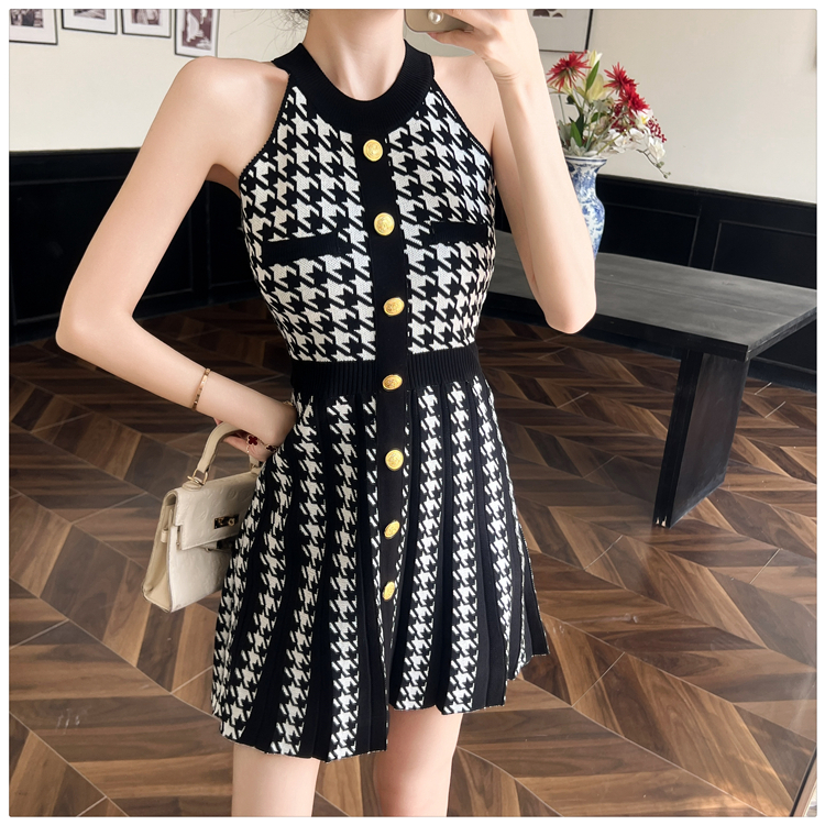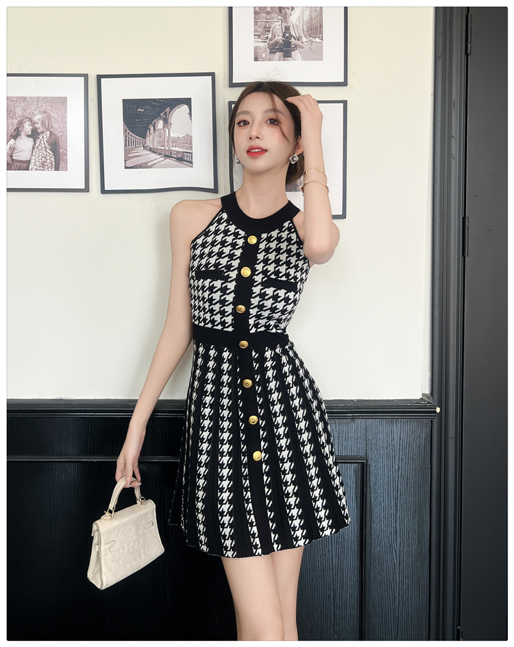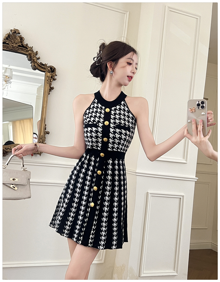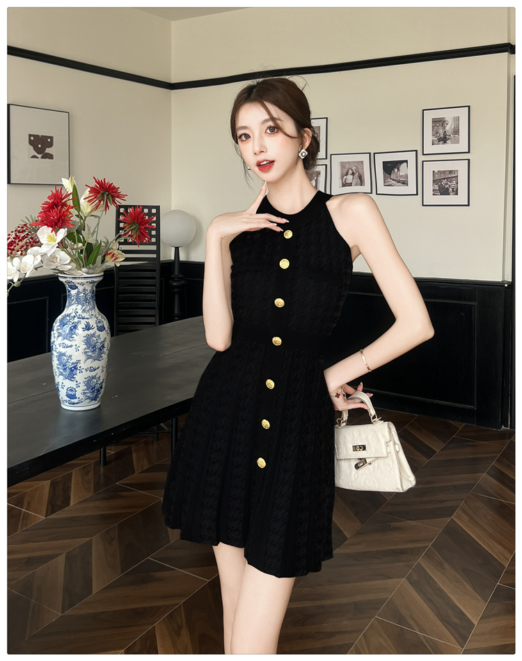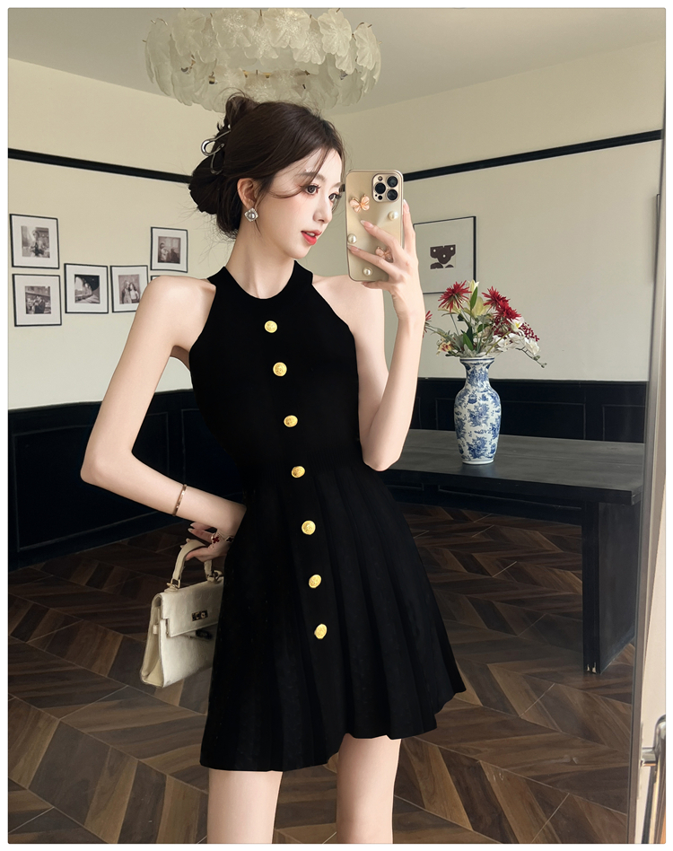 現貨-削肩金釦針織短裙洋裝FZ12170