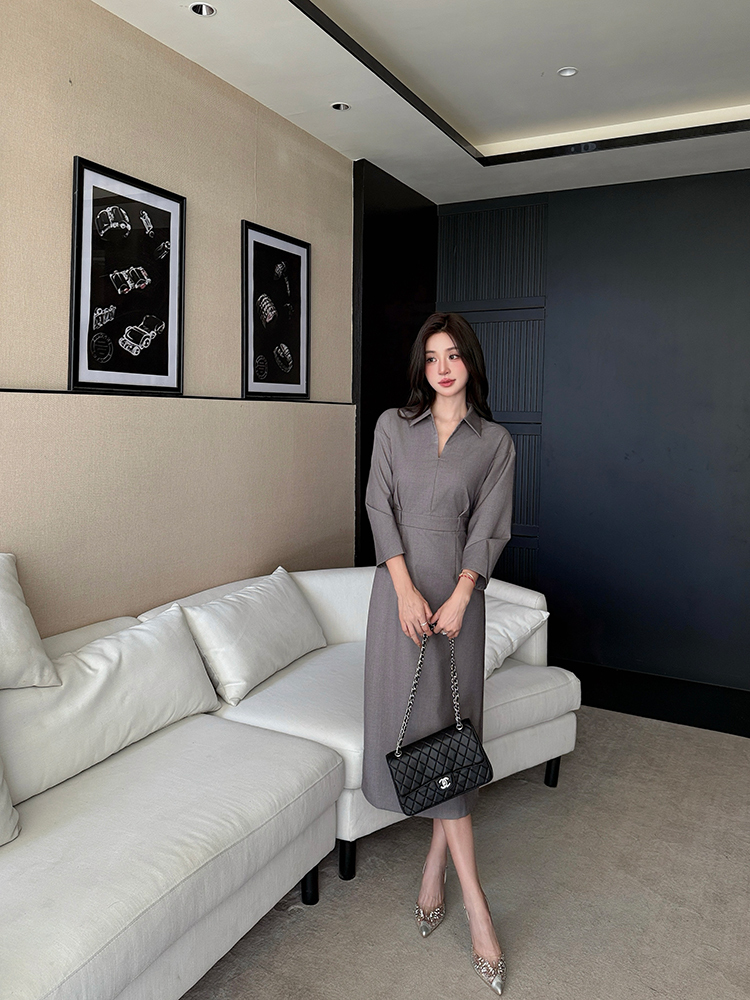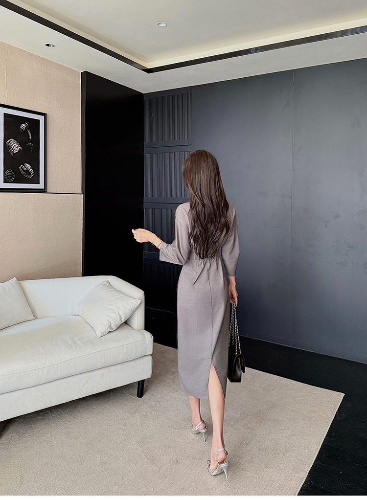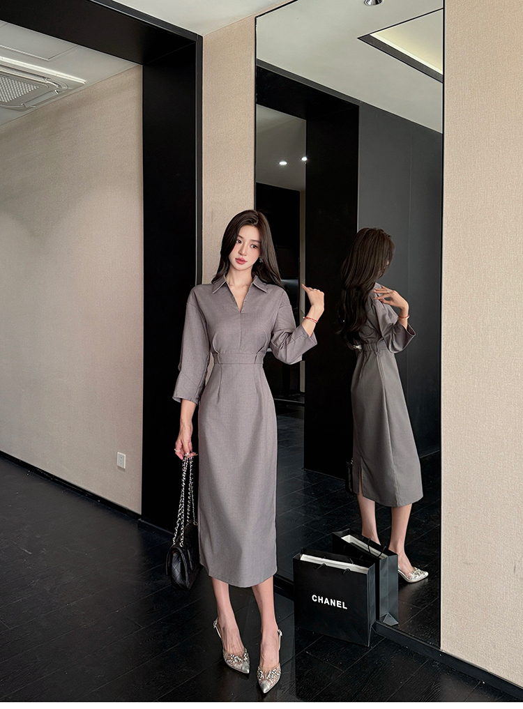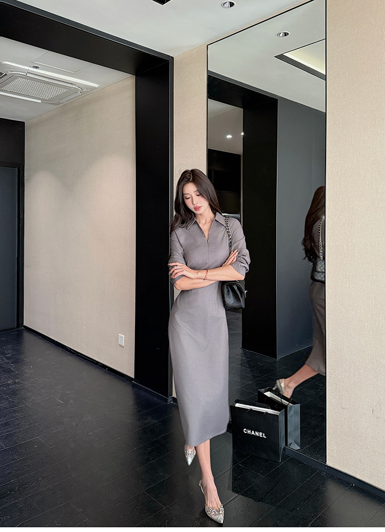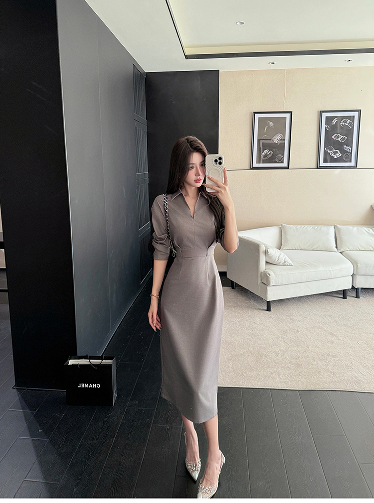 剪裁七分袖彈性縮腰長窄裙洋裝FN13068