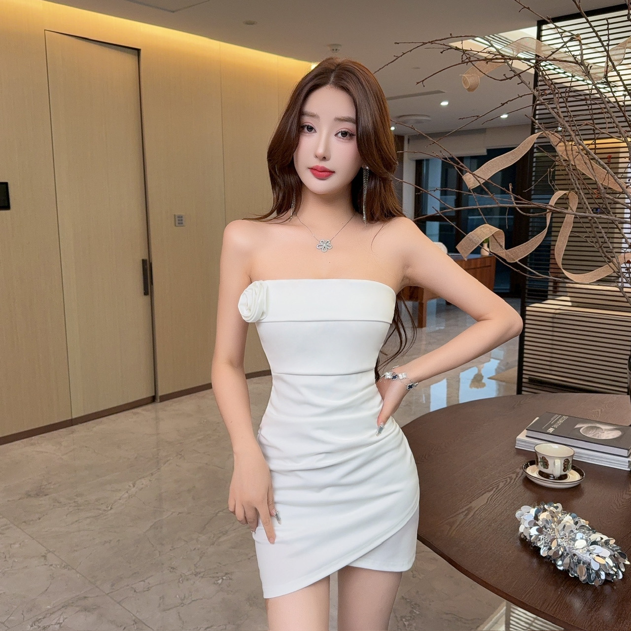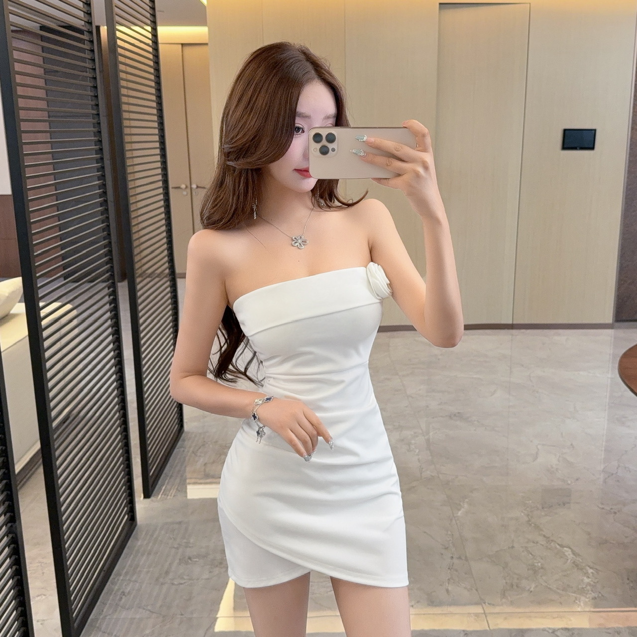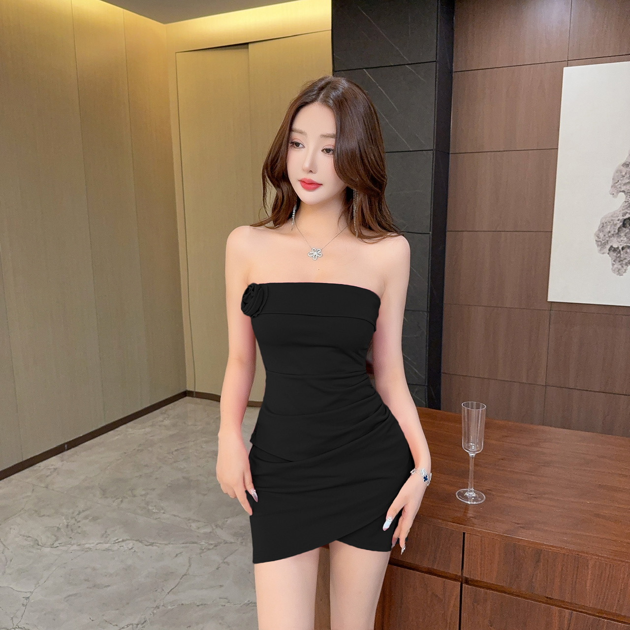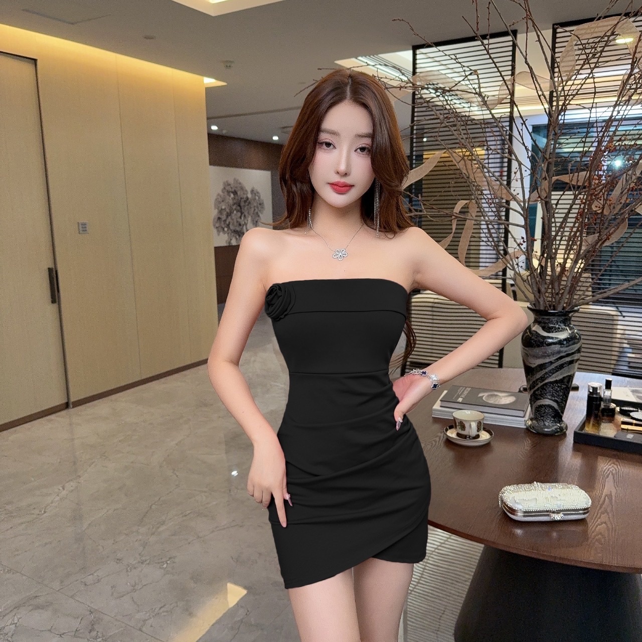 平口花朵帶胸墊交叉包臀短裙洋裝FY12735