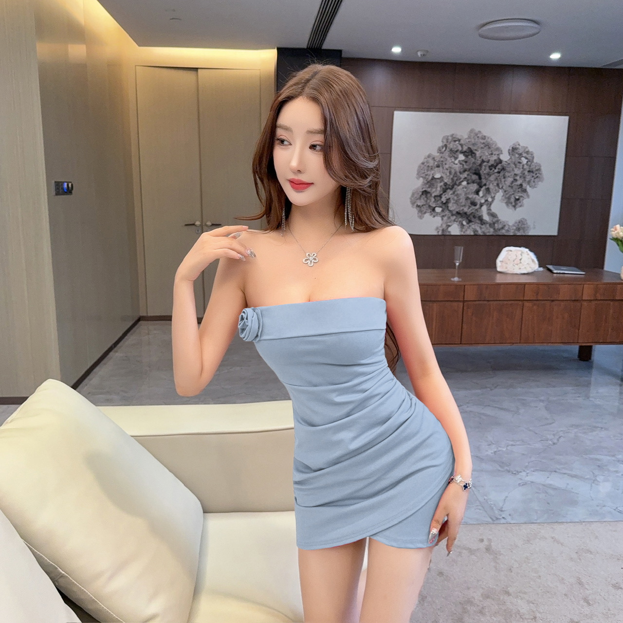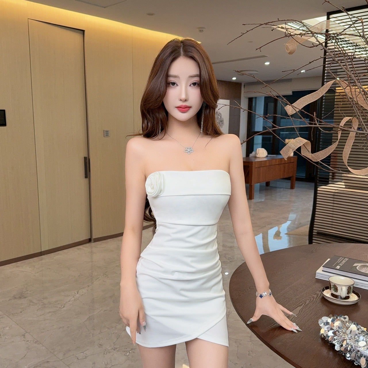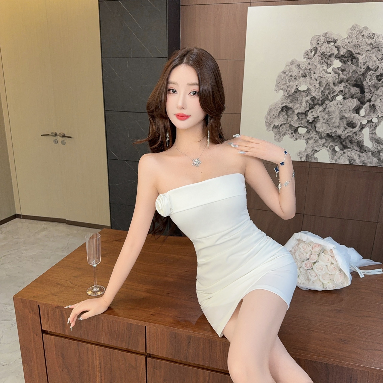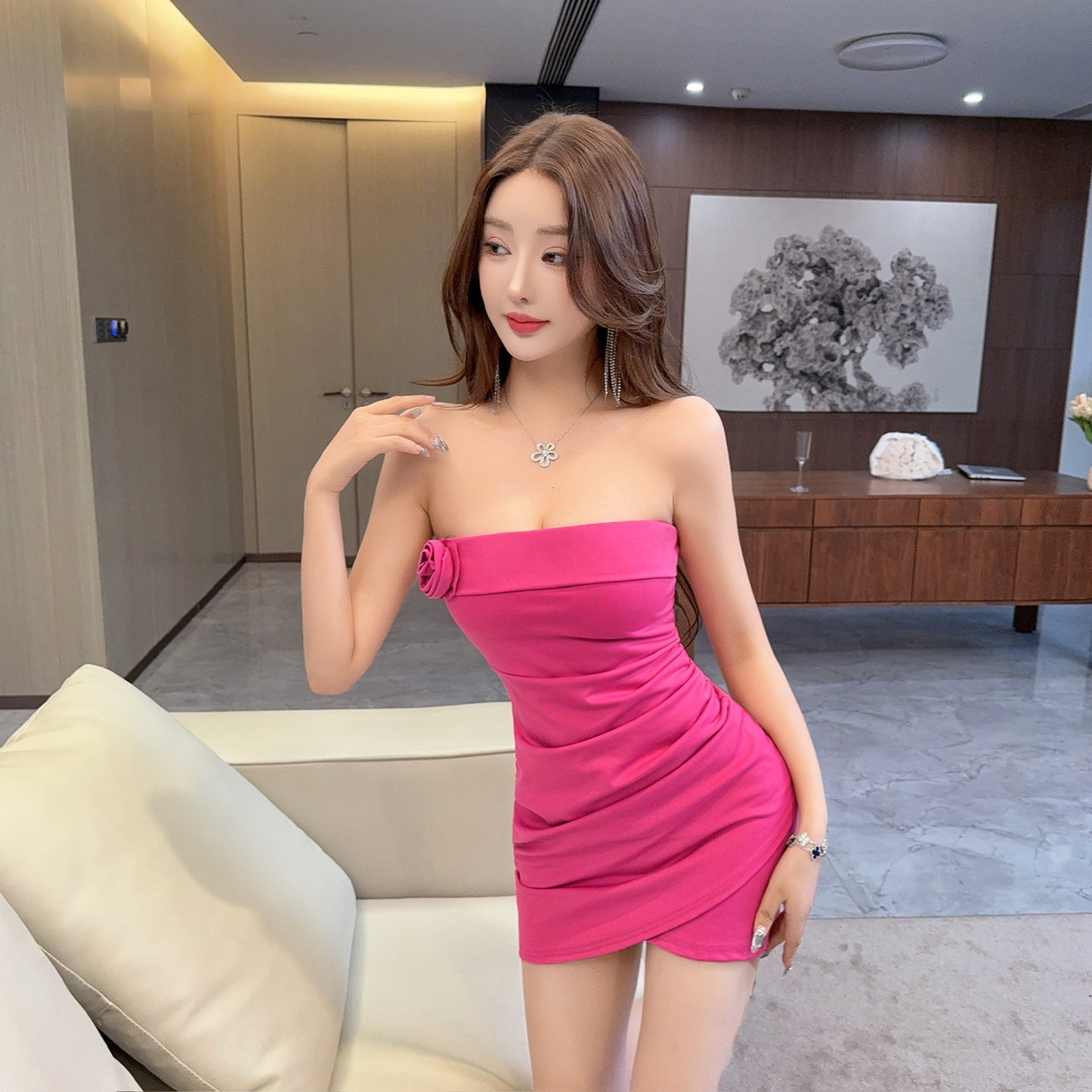 平口花朵帶胸墊交叉包臀短裙洋裝FY12735