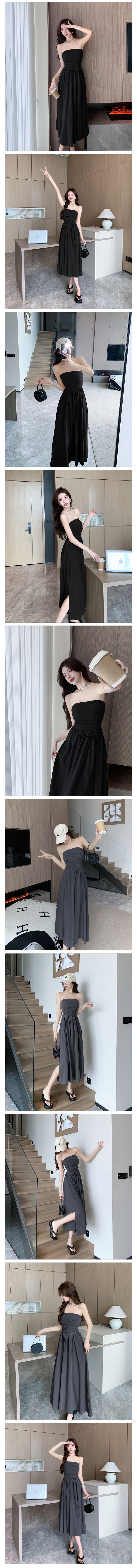 性感抹胸洋裝褶皺縮腰修身顯瘦日常休閒連身裙-麋鹿森林【SFL10151】