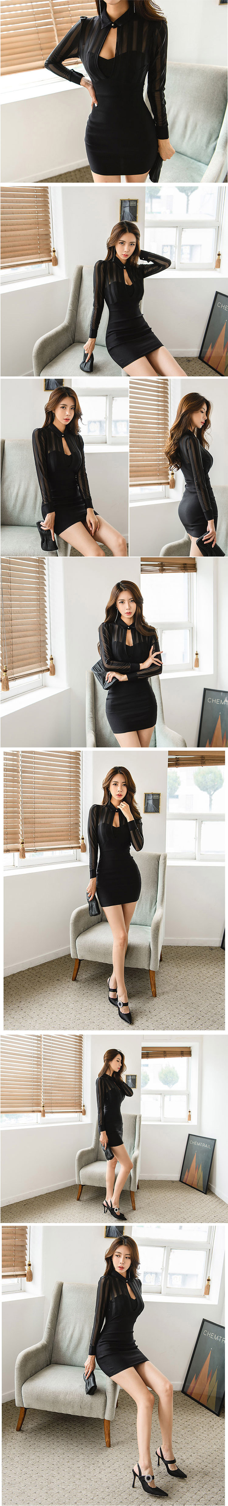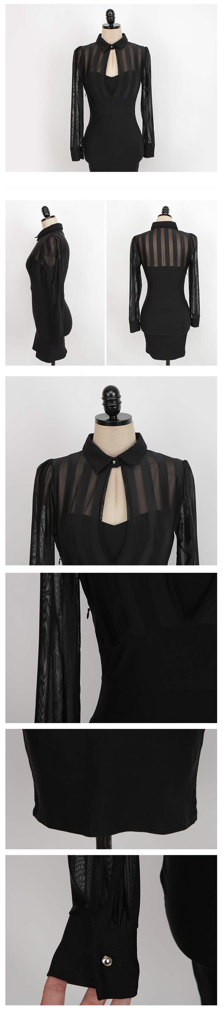 現貨-性感透視條紋網紗拼接抹胸高腰修身包臀連身短裙洋裝-麋鹿森林【SFG4279】