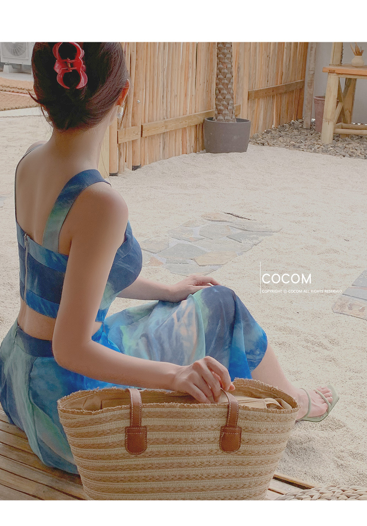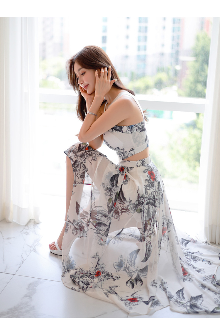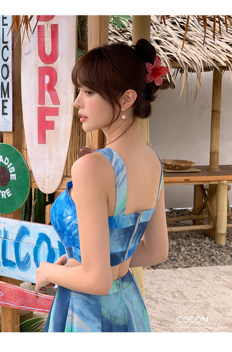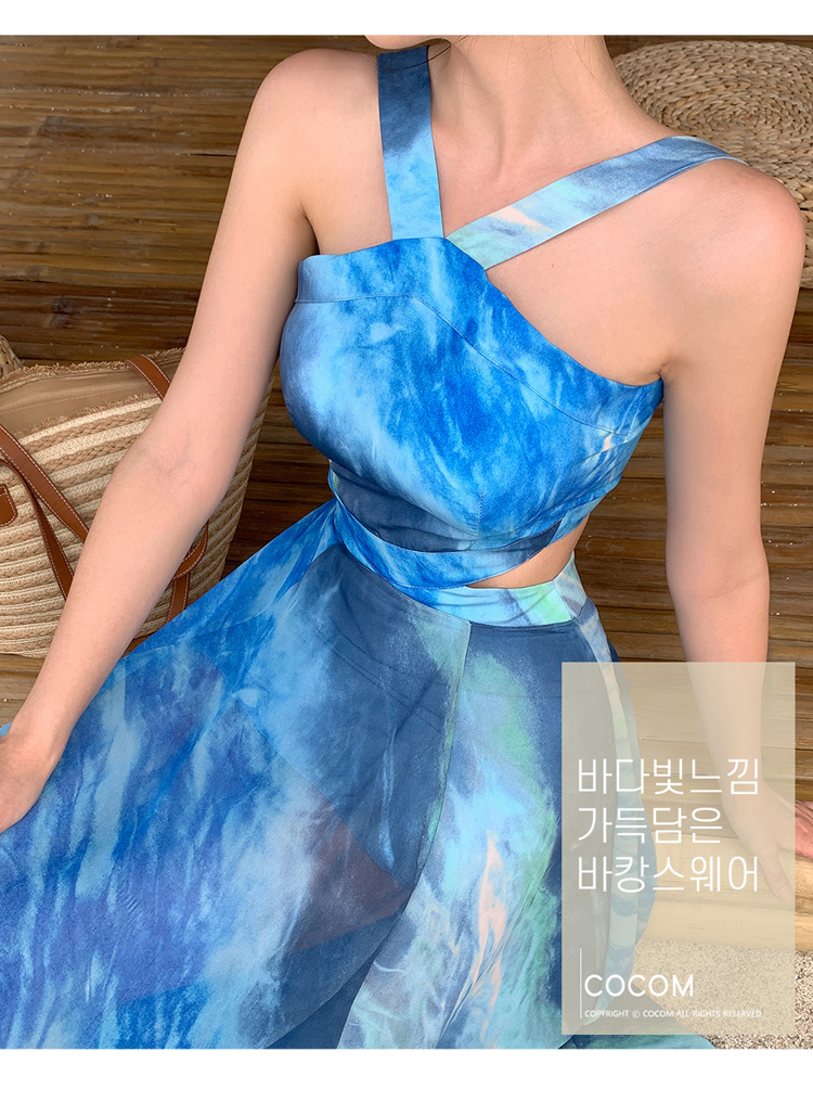 現貨-渡假風腰鏤空繞頸露肩長裙洋裝FK12396