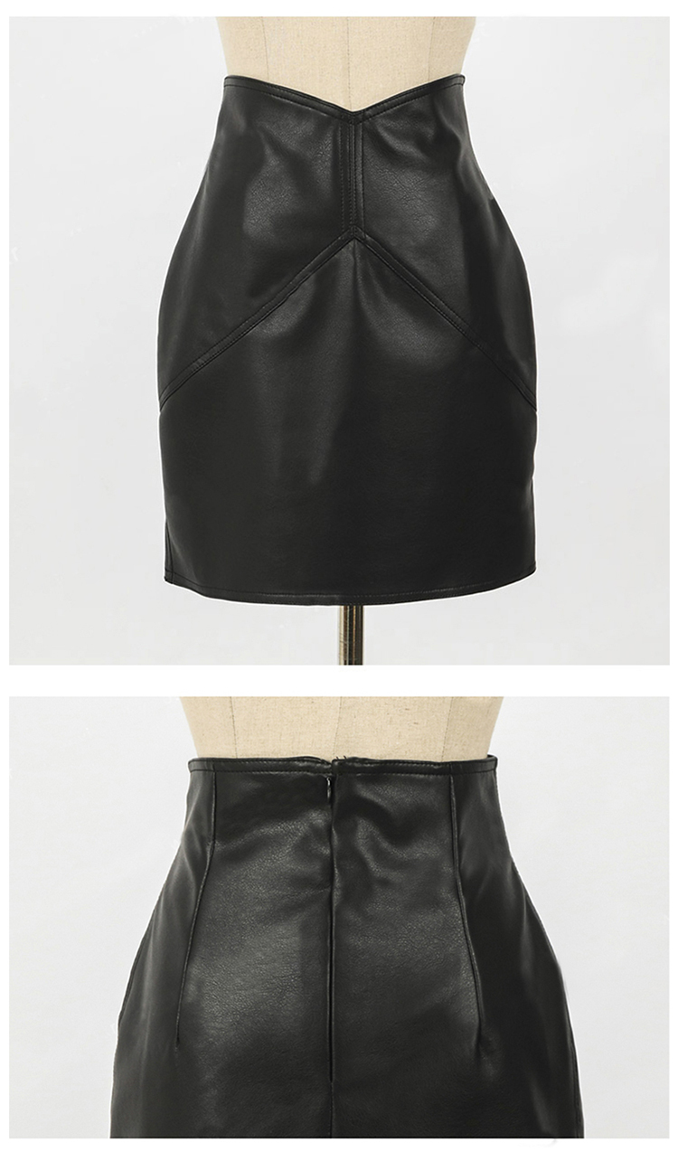 現貨-秋冬時髦PU皮裙優雅黑高腰A字包臀短裙-麋鹿森林0【SFG3798】