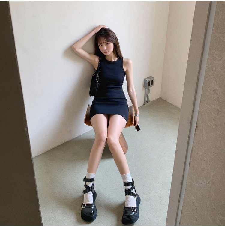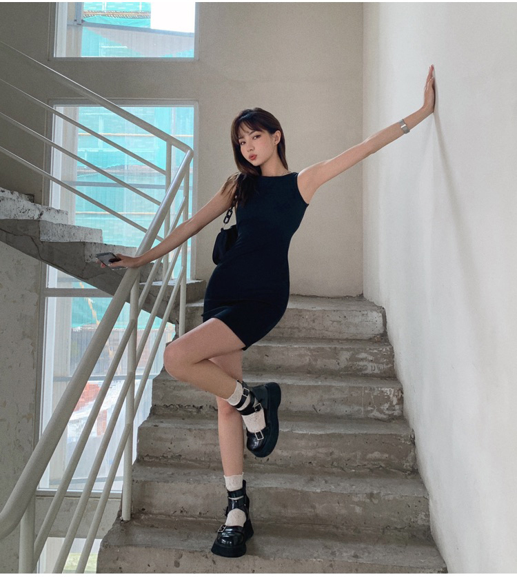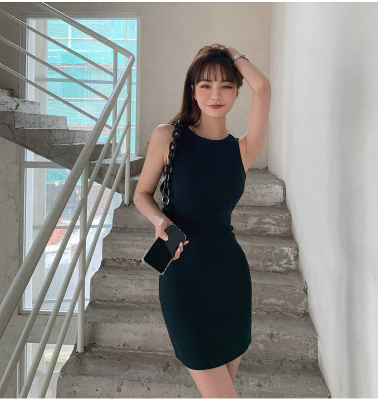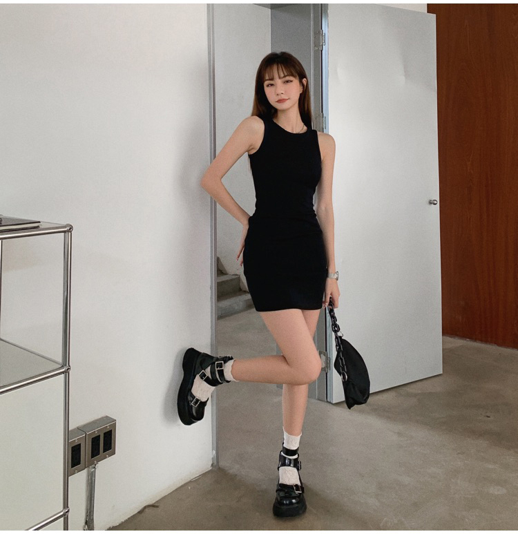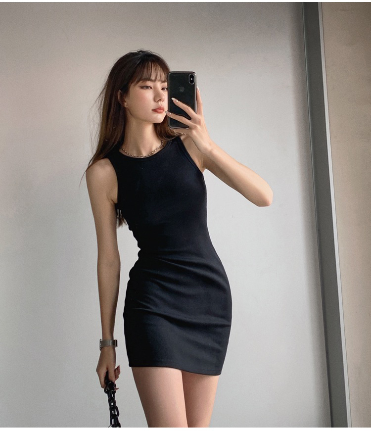 現貨-素面螺紋合身包臀背心裙洋裝FZ12188
