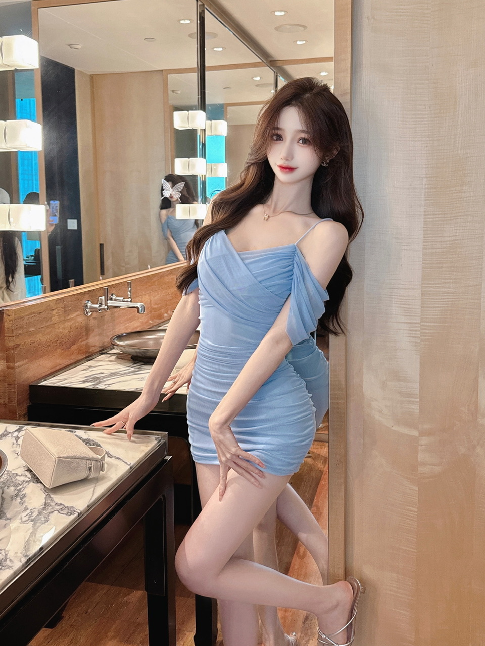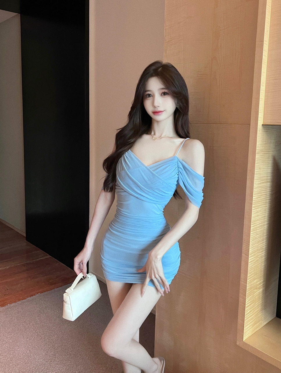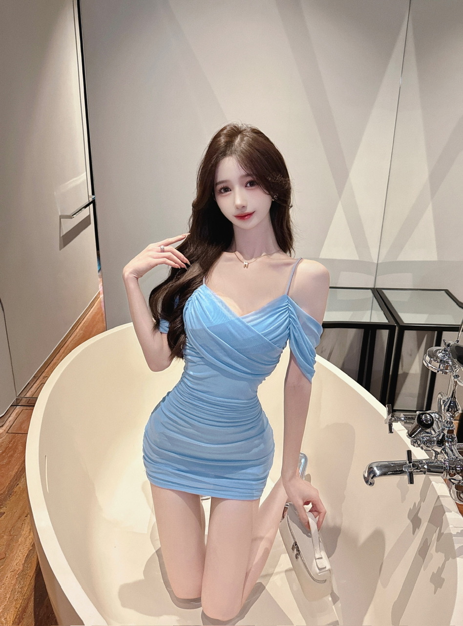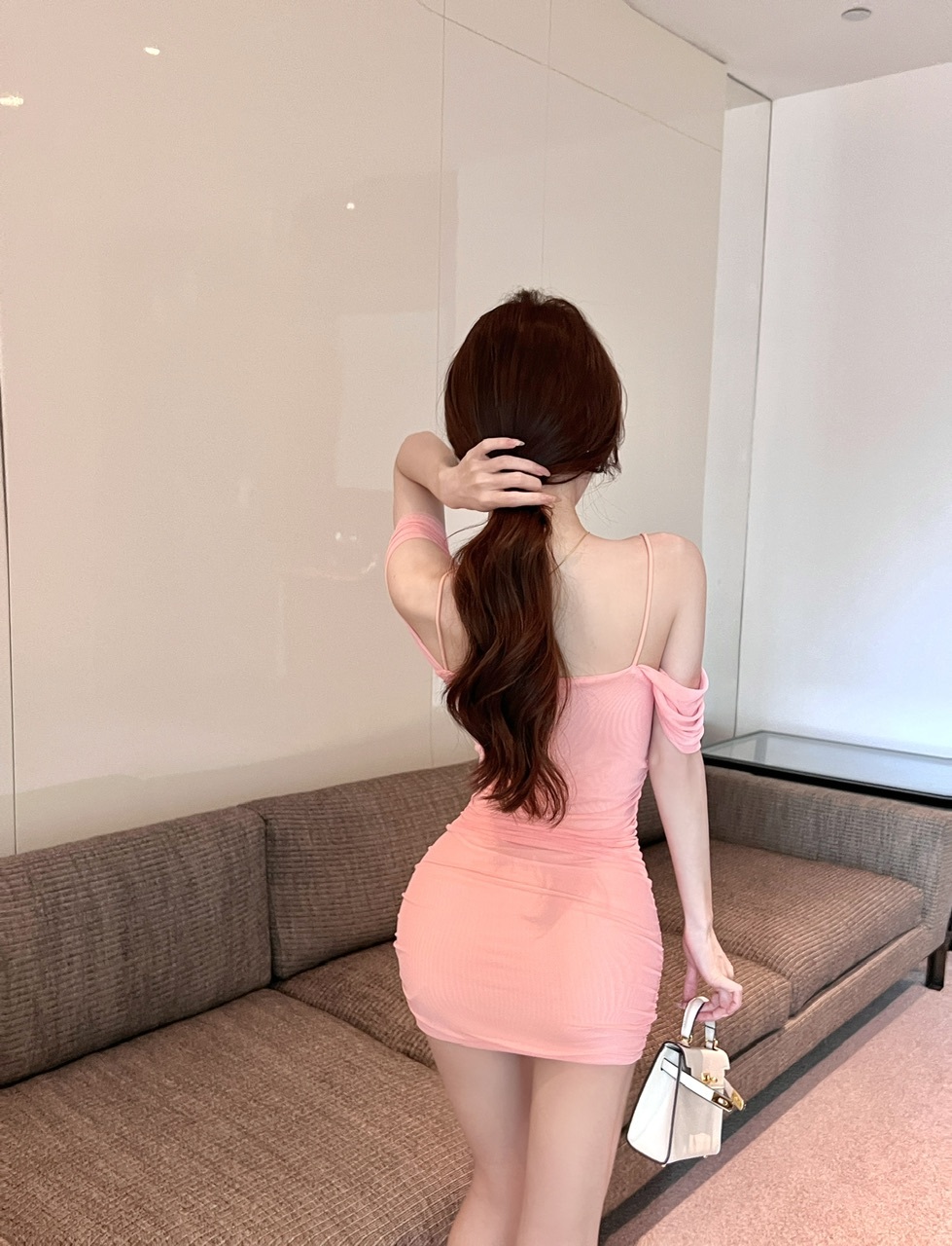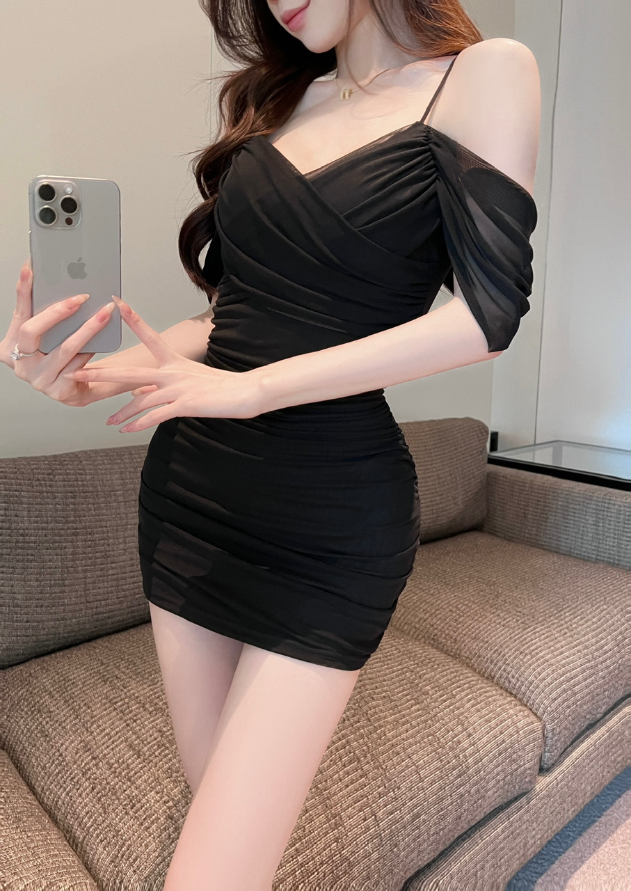 網紗X領帶胸墊露肩包臀短裙洋裝FY12521