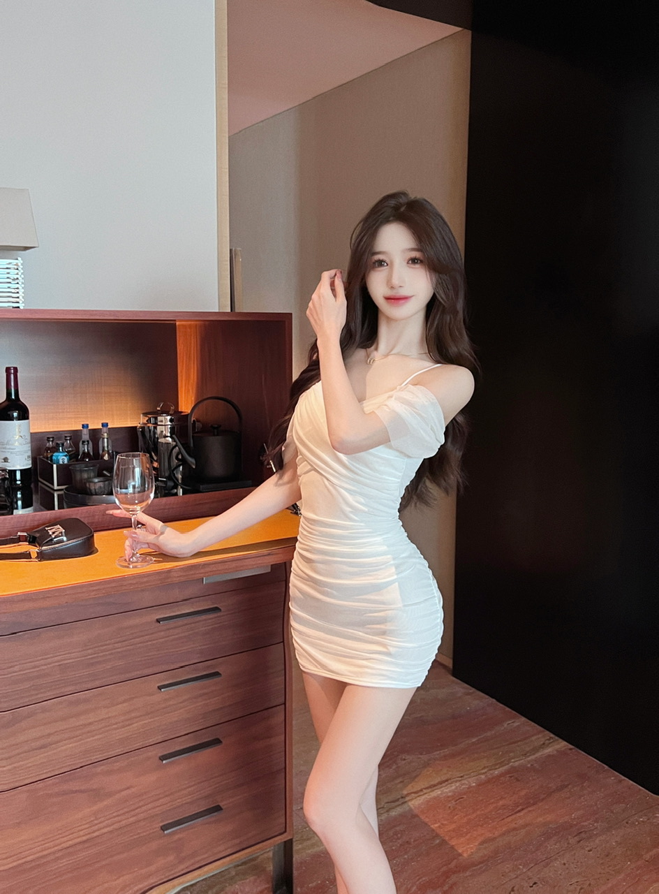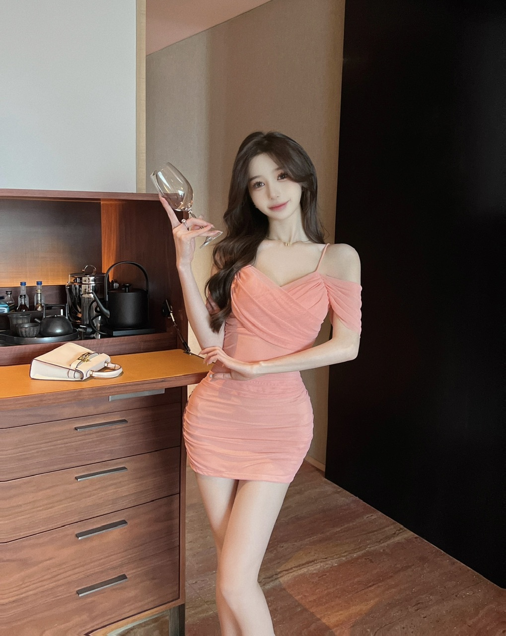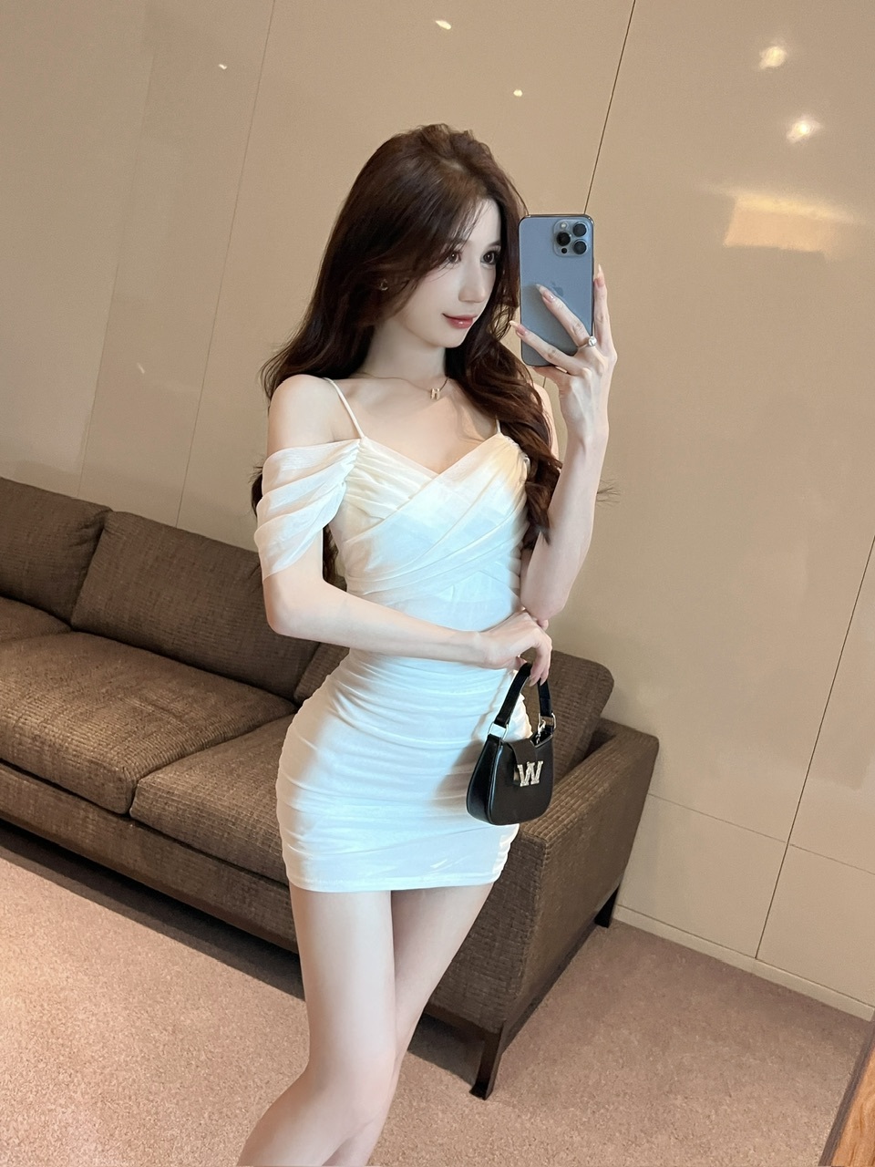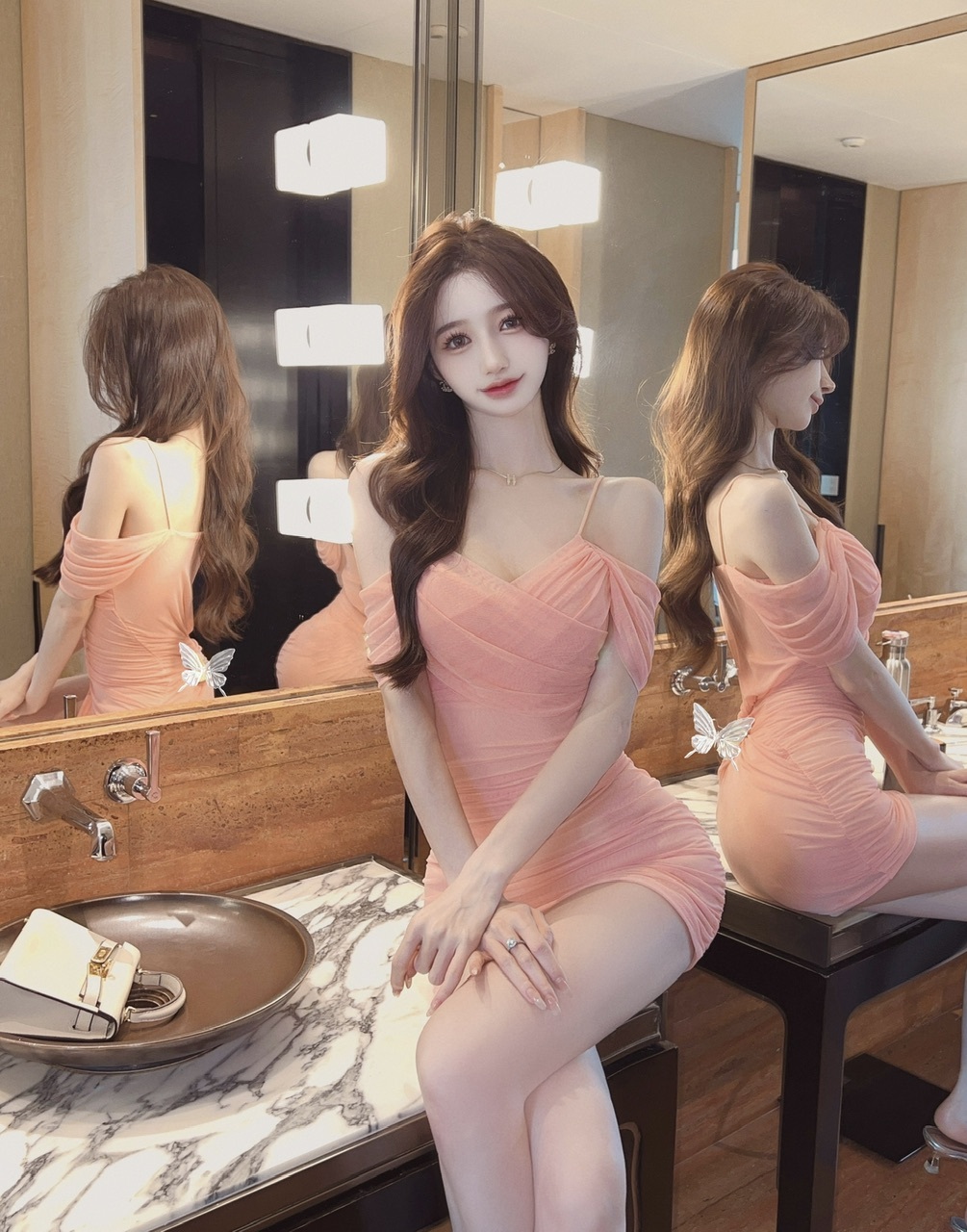 網紗X領帶胸墊露肩包臀短裙洋裝FY12521
