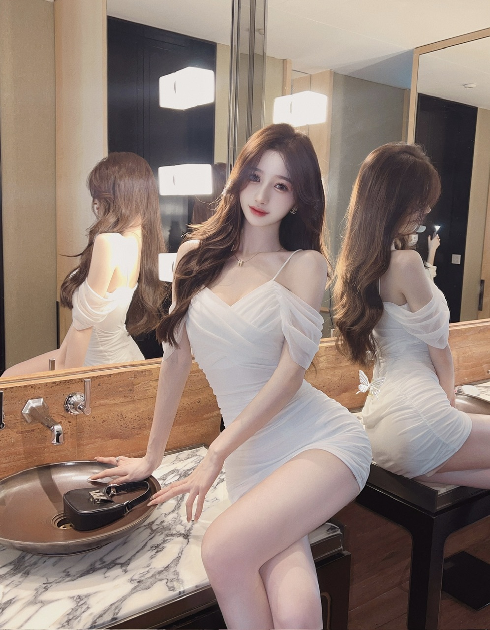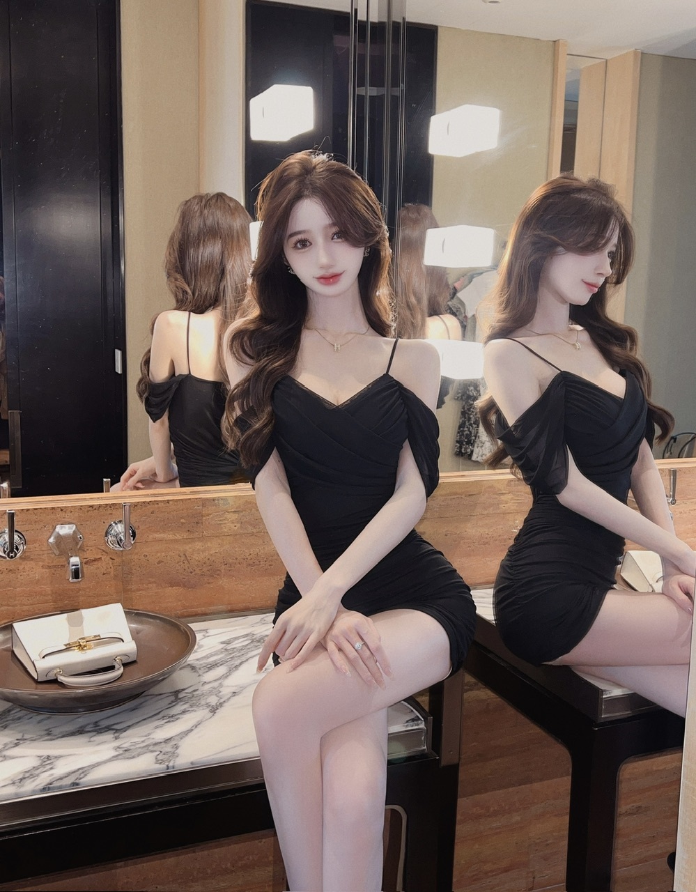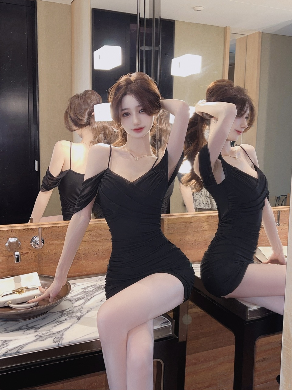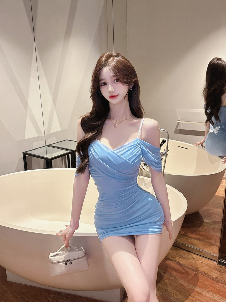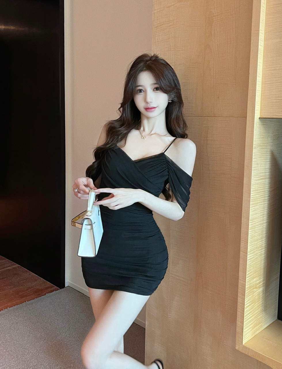 網紗X領帶胸墊露肩包臀短裙洋裝FY12521