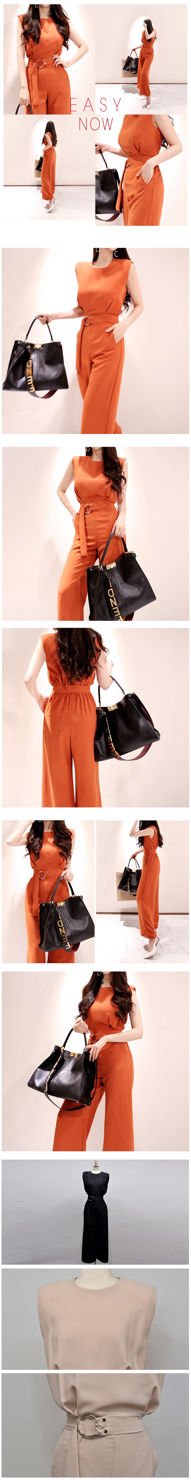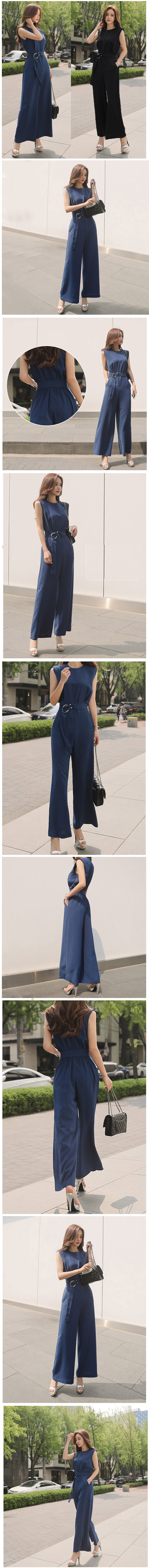現貨-韓版優雅圓領無袖雙環繫帶修身闊腿連身長褲職場穿搭-麋鹿森林【SFG7945】