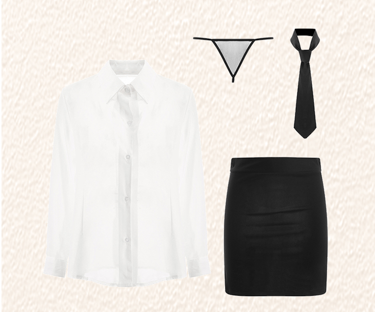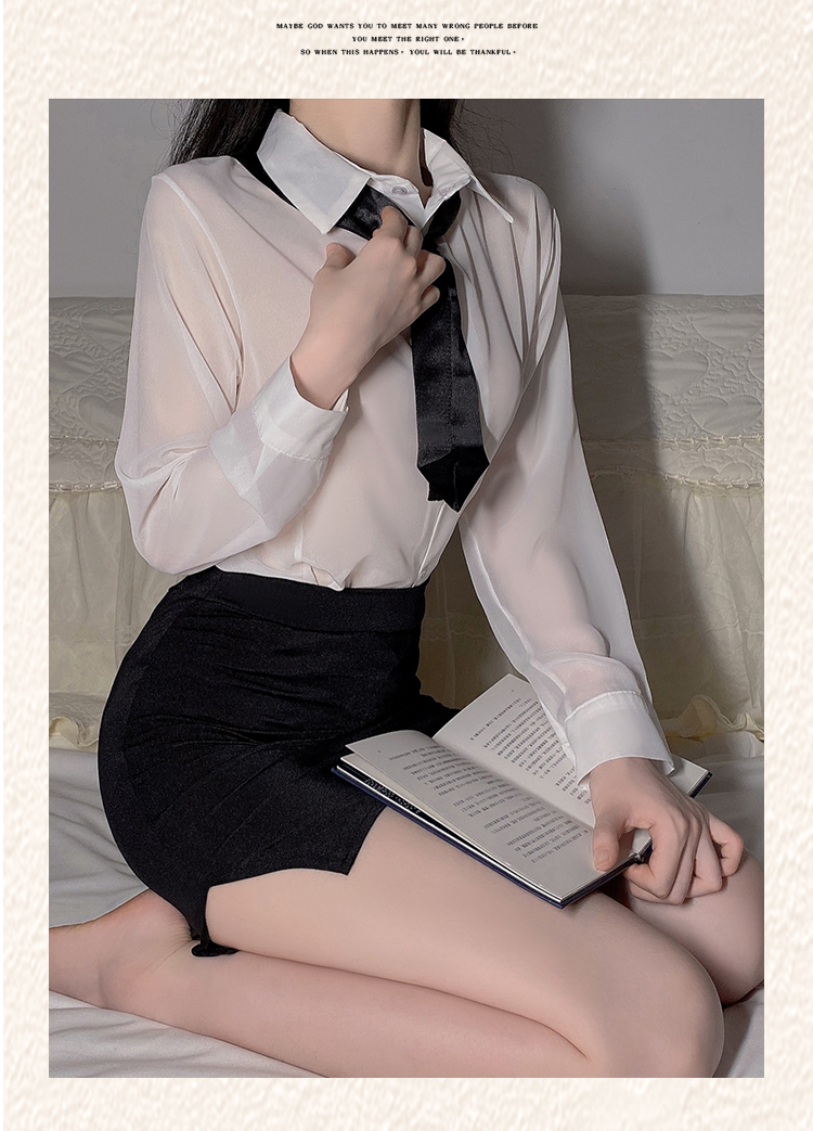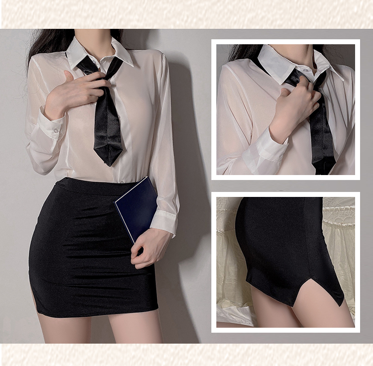 性感微透襯衫+包臀短裙角色扮演制服套裝-麋鹿森林SGX4778A