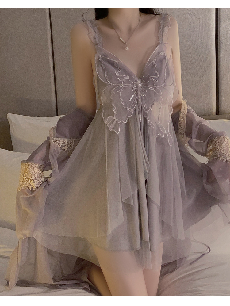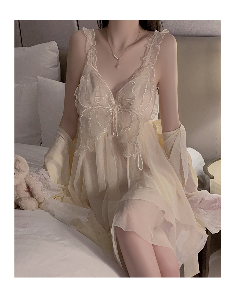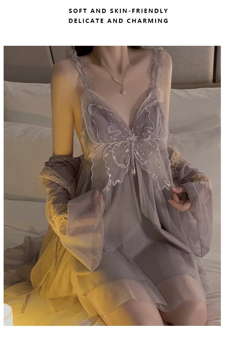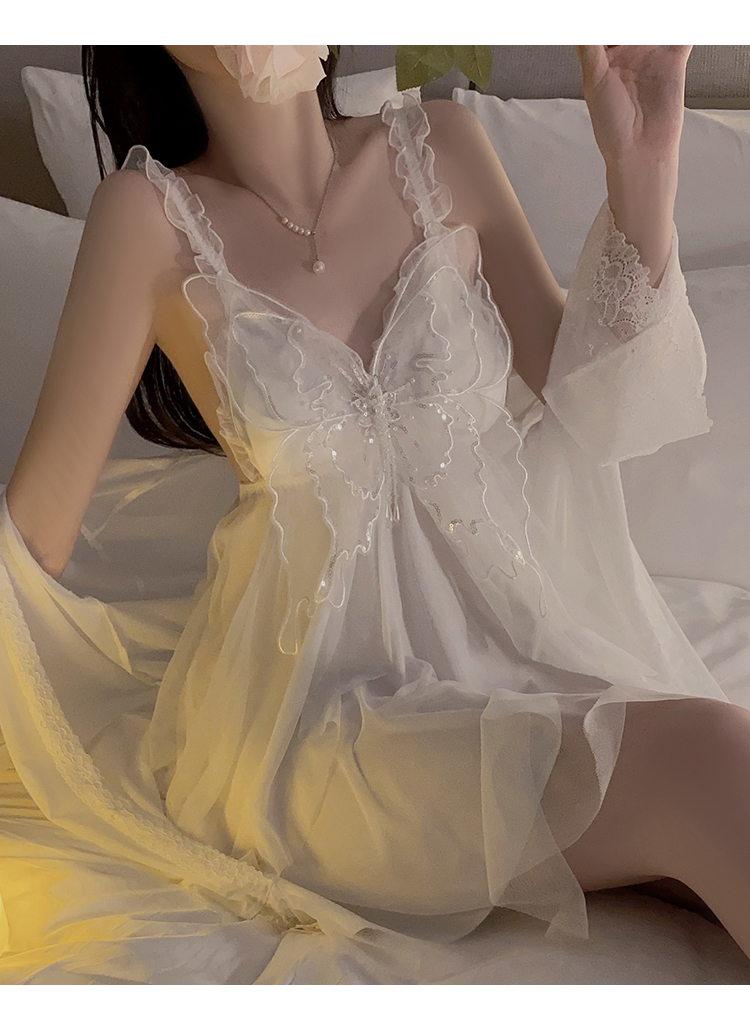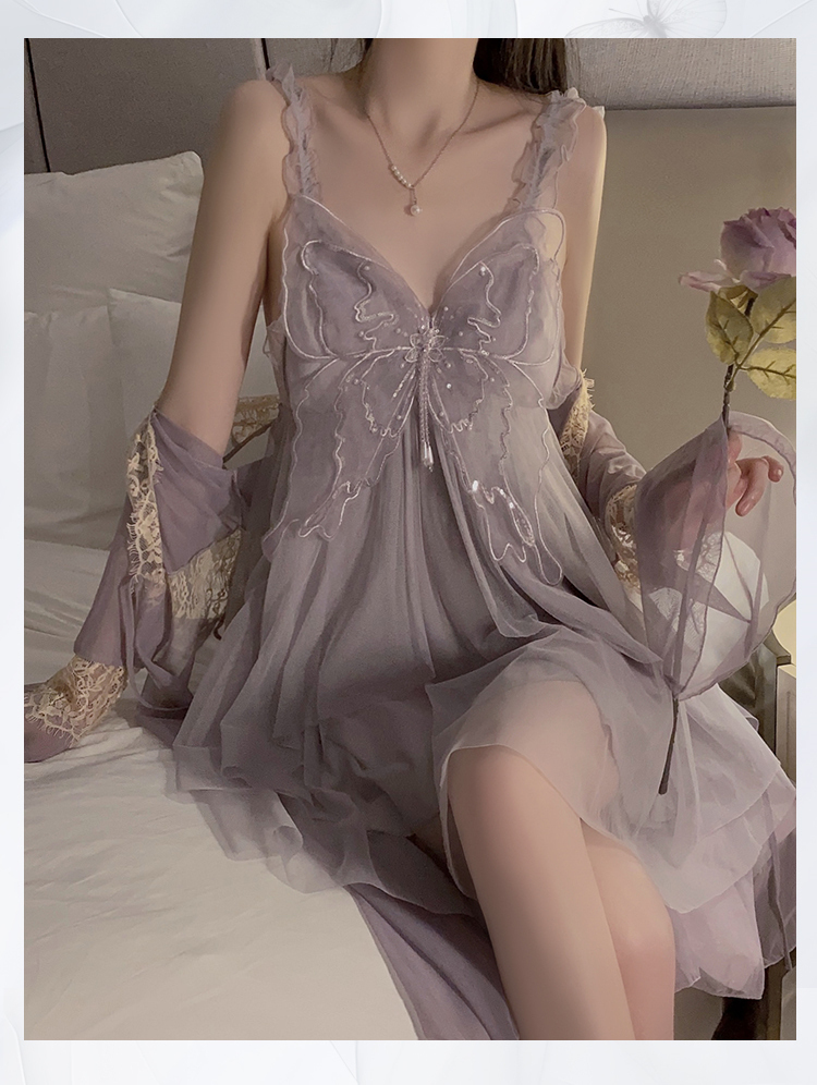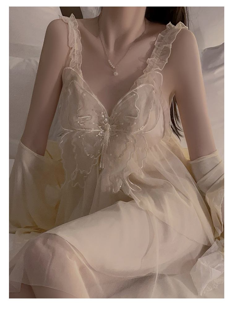 蝴蝶羽翼不規則裙襬褶皺花邊肩帶吊帶睡裙-麋鹿森林SGX8758A