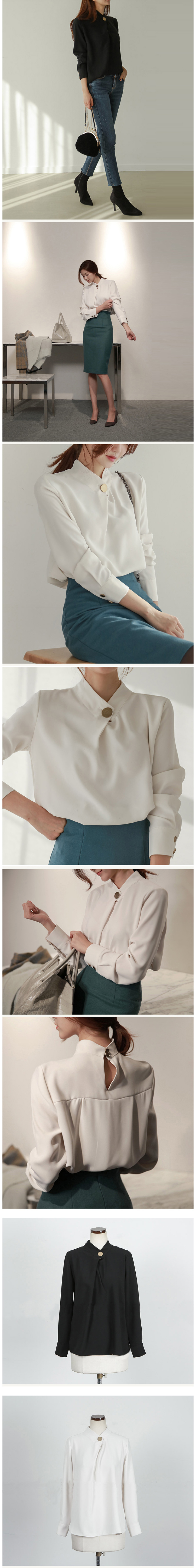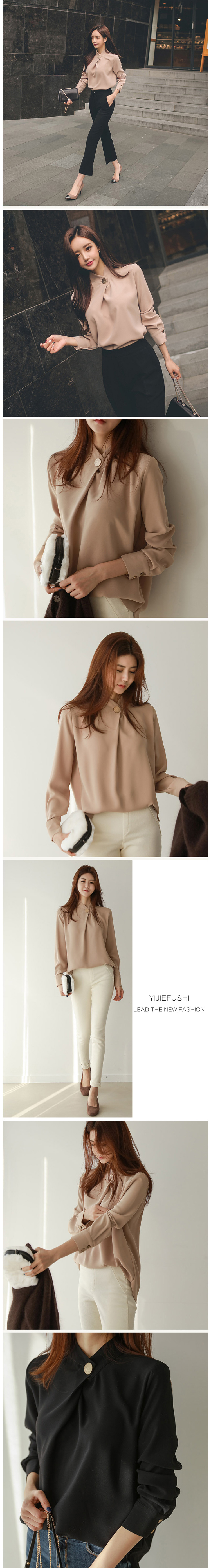 現貨-優雅單釦立領寬鬆雪紡衫職場通勤上衣-麋鹿森林【SFG3243】