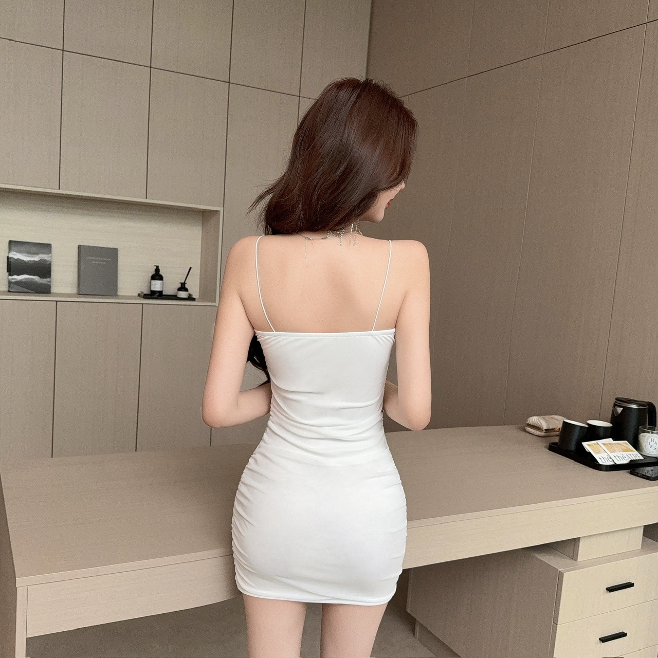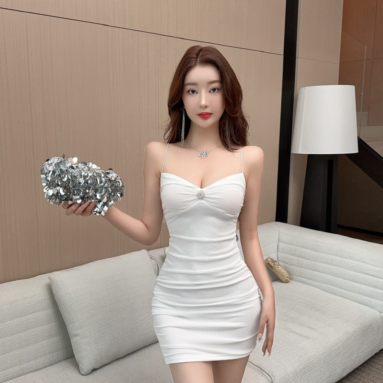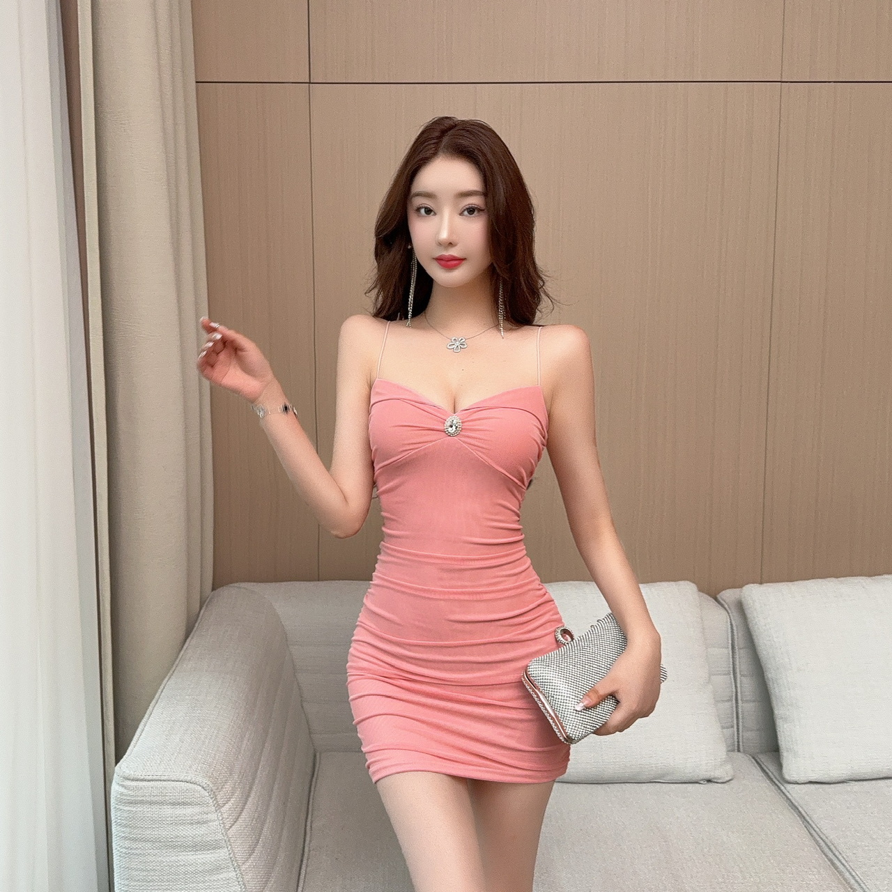 寶石低胸網紗側邊抓皺包臀短裙洋裝FY12314