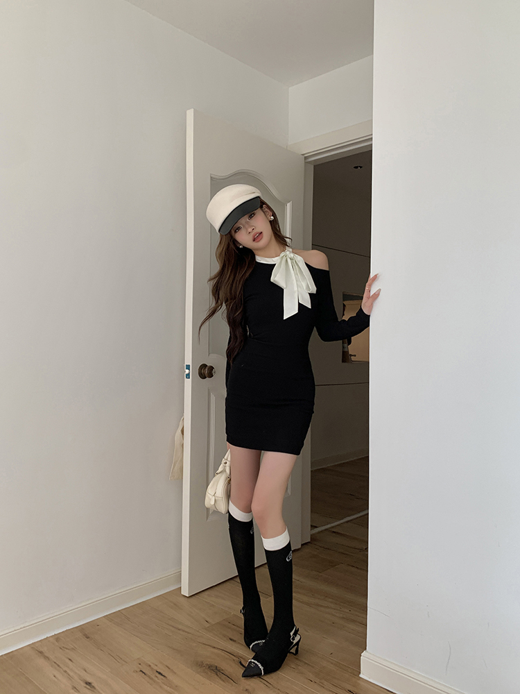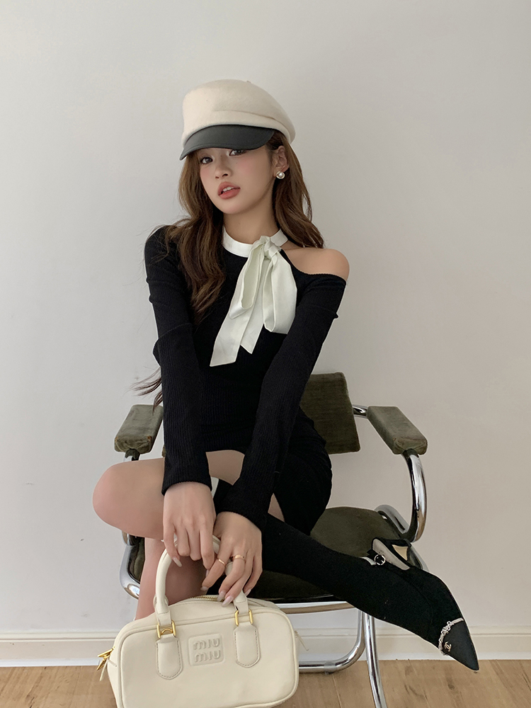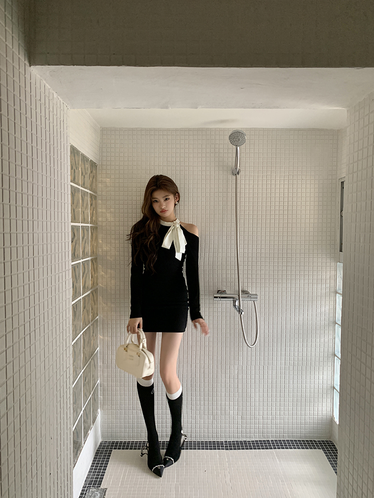 小香風單肩鏤空包臀短裙洋裝FZ12809