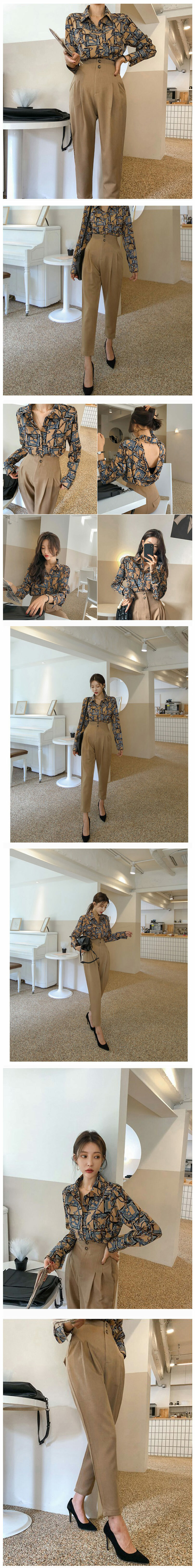 現貨-復古高腰雙釦打摺修身寬管OL通勤哈倫九分褲-麋鹿森林【SFG3382】