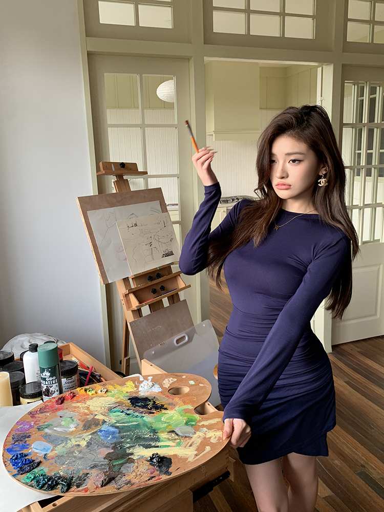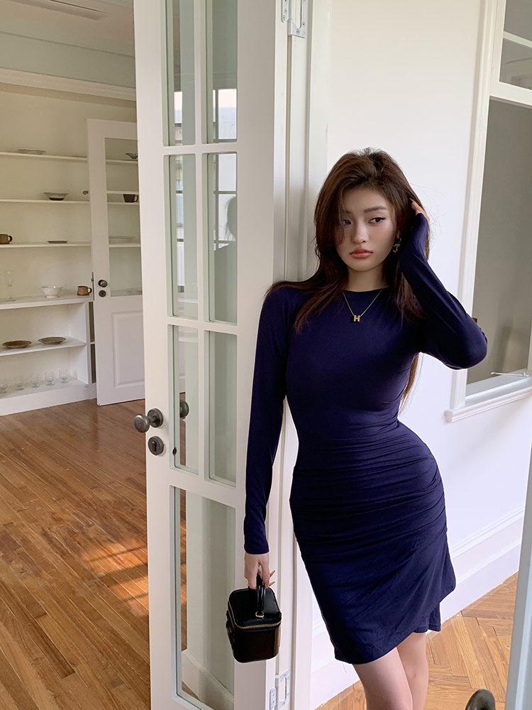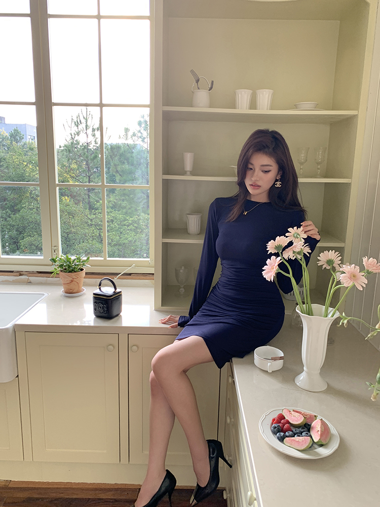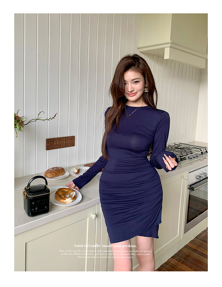 薄棉抓皺交叉裙襬包臀短裙洋裝FZ12802